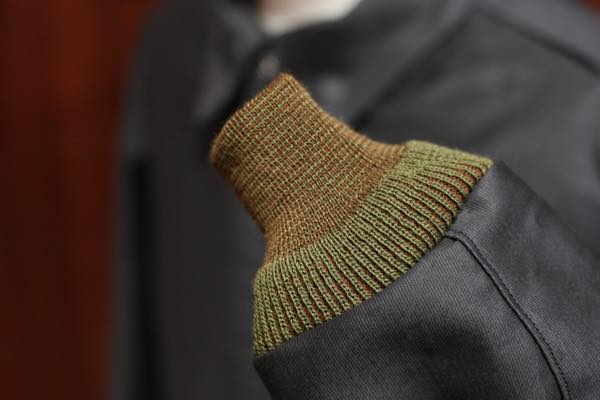 リブ部分には、2色の色糸で編み上げたミックスリブを使用しており、クラシカルな雰囲気を醸し出しております。