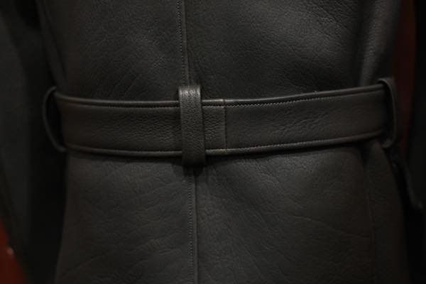 シルエットは、コートらしくAラインになっており、着丈は身長にもよりますが股下くらいになると思います。ウエスト部分には、同生地を使用したベルトが付属しており、ベルトは取外し可能となっております。またベルトの裏側にはコットンフランネル生地が使用されております。