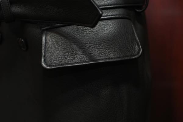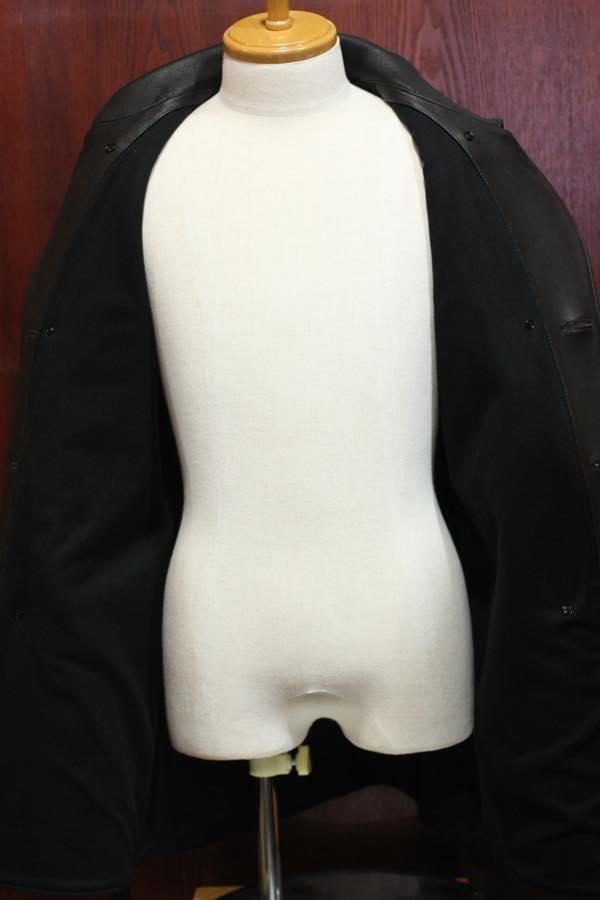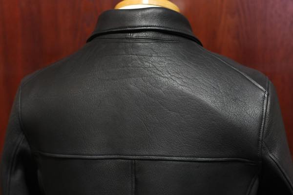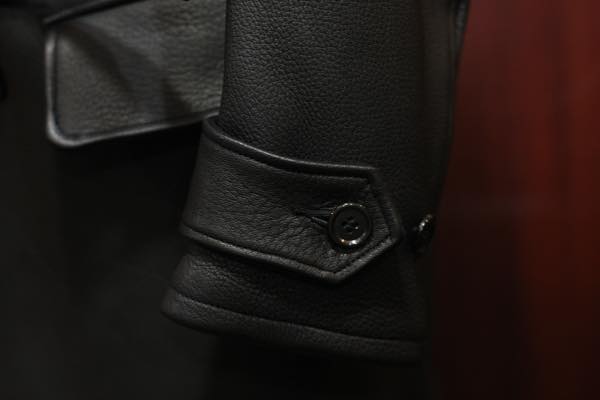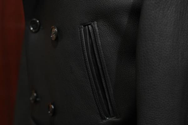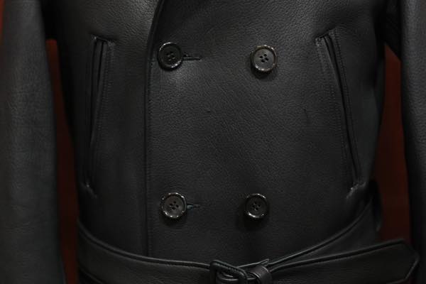 このジャケットのベースには、1930年代のレザーコート(カーコート)をモチーフにしており、フロントボタン仕様でフロントポケットが4個付いたディテールになっております。