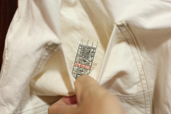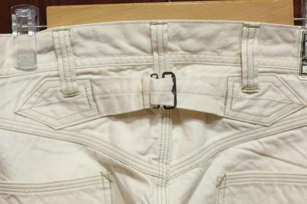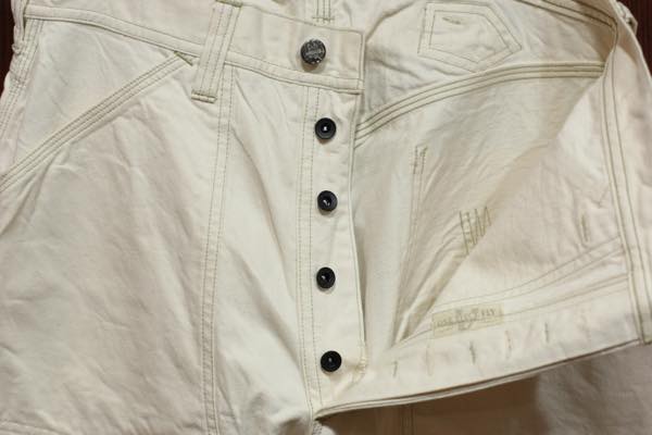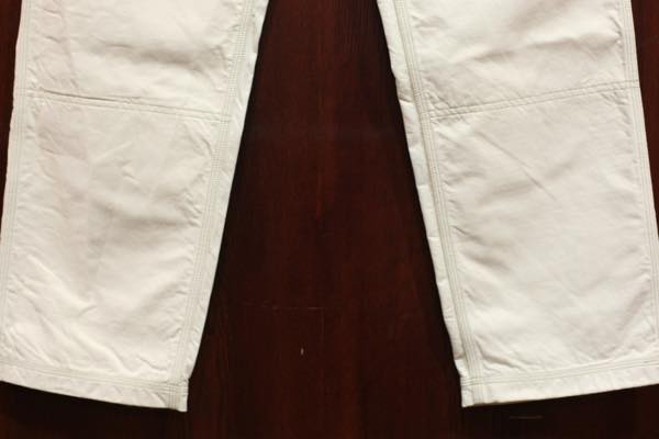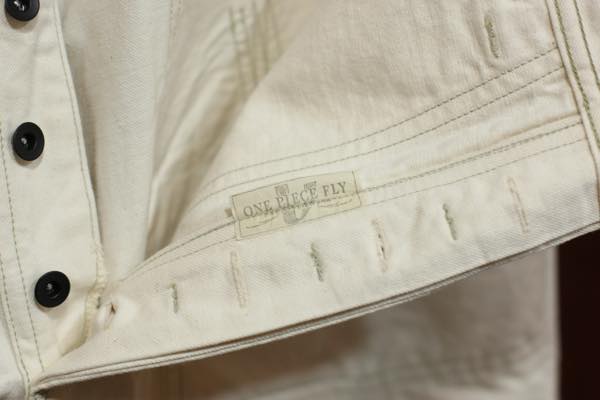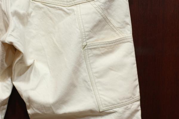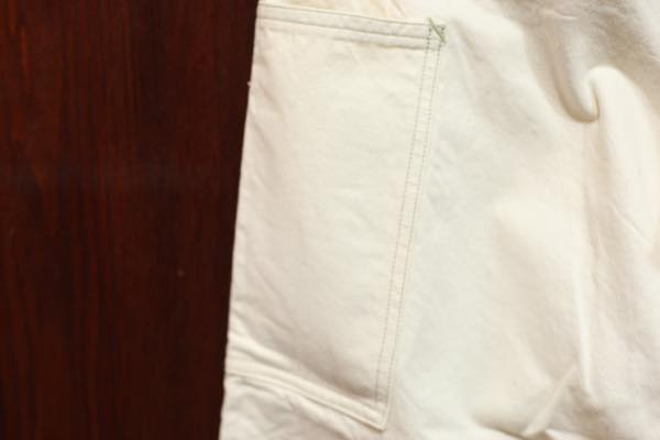 インディゴ・デニムの経年変化も楽しいですが、このホワイトの生地が汚れていく変化も楽しいと思います。汚れたほうがヴィンテージや古着のように雰囲気が良くなると思います。