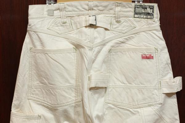 バックポケット右側の表にはアイアンオールのネームタグが付いており、品質保証タグのユニオンチケットは左ポケット内側に縫われております。