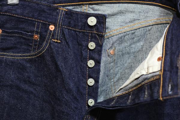 我々が思う501XXのデニム地は、生地に「粘り」と「バネ」があり、型くずれしにくく、膝が出ても洗えば戻ってくれる生地。タテ落ち感はネップが絡んだとしても自然なもので、コンピュータームラのわざとらしさは無く、ほどよく綾立ちとザラつき感がある14ozのデニム地。