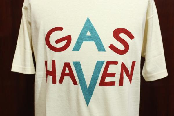 広大なアメリカの道路脇に立てかけられているサイン看板をイメージしたシンプルなプリントTシャツ “ガス・ヘブン” になります。