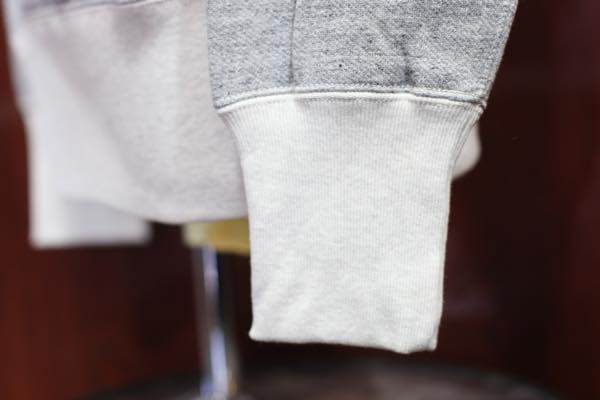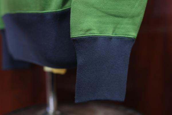 このスウェットシャツの特徴でもある、首・袖・裾リブにはボディと違った配色でツートンカラーになっております。