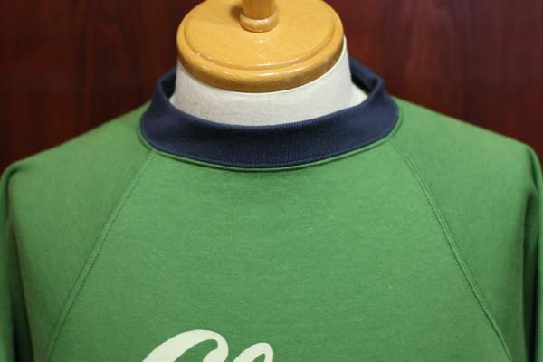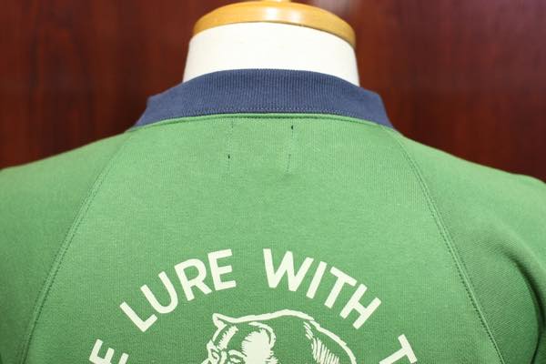こちらのスウェットシャツは、1950年代のヴィンテージ・スウェットシャツをモチーフに、ラグランタイプとなっており、ラグランタイプは首元から脇下にかけてステッチで施されているのが特徴的です。セットインスリーブと違って肩周りの地心地が楽なのが特徴的でもあります。