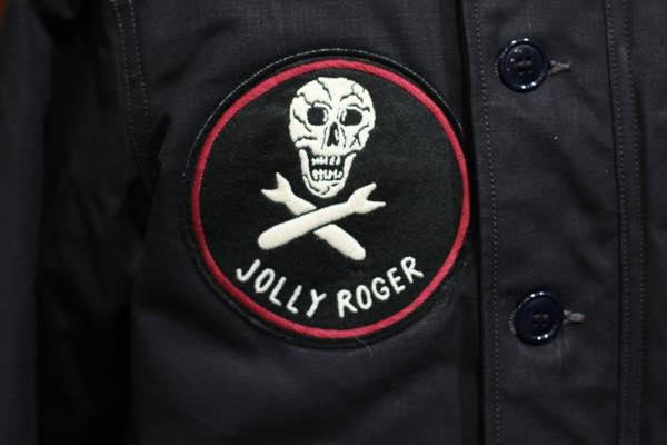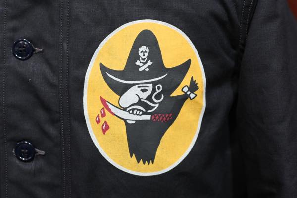 フロント右胸には、アメリカ第5空軍第90爆撃隊のフェルト製刺繍パッチが付いており、左胸には、第90爆撃隊・第400中隊 “ブラック・パイレーツ” のノーズアートがプリントされております。