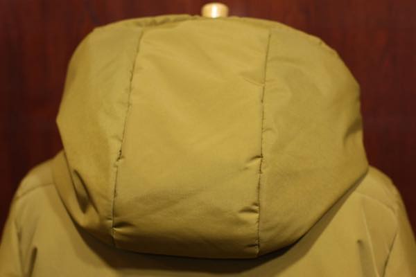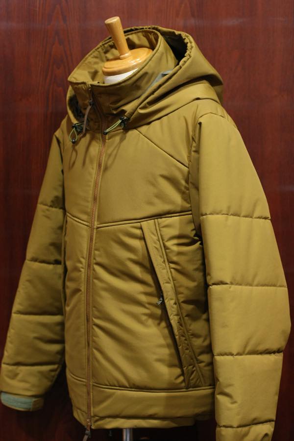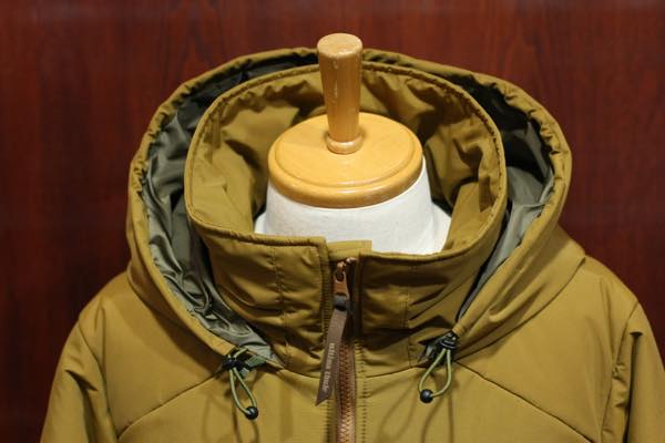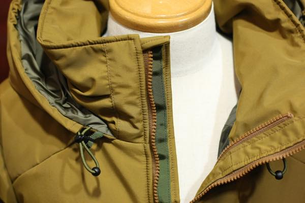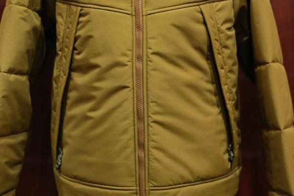 生地素材は、撥水性・防水性の機能を持った「ブリーザブル・ウォータープルーフ・ナイロン」防水高機能素材が使用されております。裏地には、薄手のコーデュラ・ナイロン素材が使用されており、中綿には断熱性・保温性に優れている “プリマロフト” が使用されております。