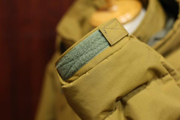 フロント内側には、フリースジャケットとベストが脱着できるようにリバーシブルジッパー仕様となっており、首裏と袖裏にはスナップボタン付きのストラップが取り付けられております。