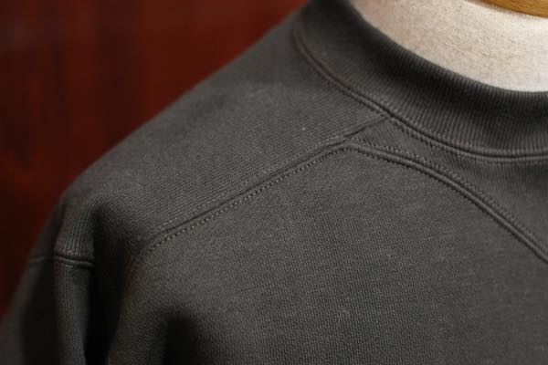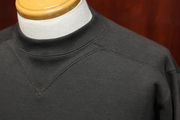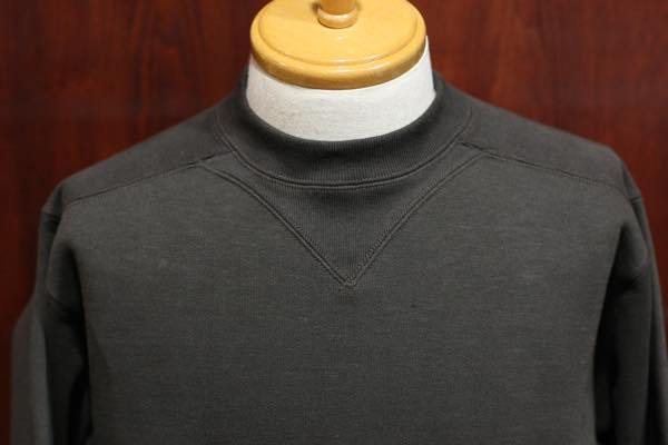 20〜30年代のスウェットシャツをモチーフにしており、首元の表裏にはV形状のフライス生地(両Vと呼ばれるヴィンテージさながらのVリヴ)が付き肩部分にもリヴ生地が使用されております。