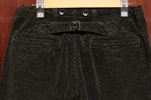 サスペンダーも取り付けれられるクラッシックタイプのトラウザーズです。生地がコーデュロイということもあって上品な雰囲気に仕上がっております。