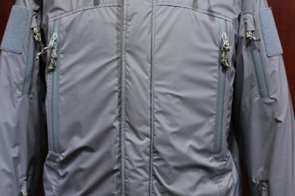 両腕には、ベルクロが付き、その脇にはジッパーポケットが取り付けられており、その下の袖口手前にもジッパーポケットが設けられております。