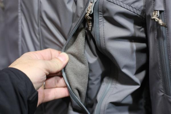 フロントには、入口が大きめの(グローブを着けても使い易い)ダブルジッパー付きの裾ポケットが設けられており、ポケット内部にはフリース素材に似た起毛素材が使用されております。