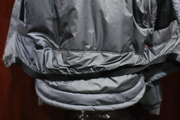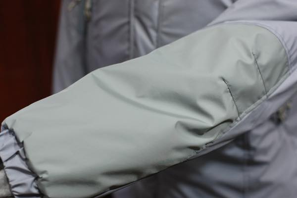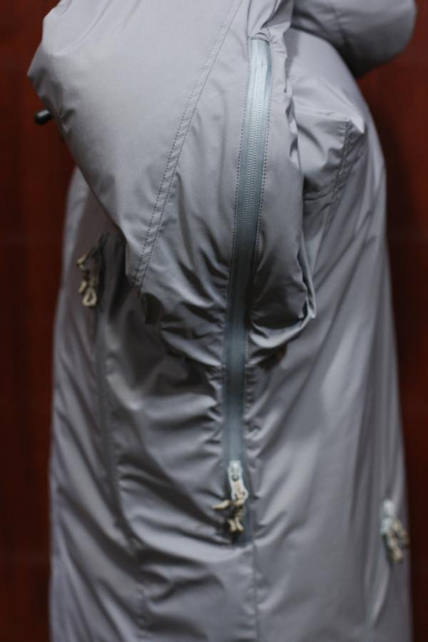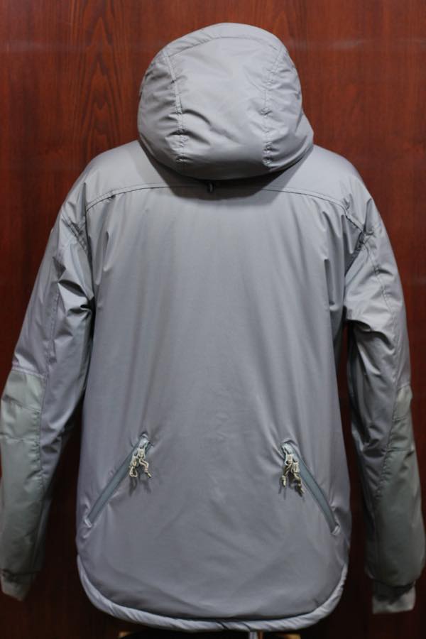 生地素材は、撥水性・防水性の機能を持った「ブリーザブル・ウォータープルーフ・ソフトシェル・ナイロン」防水高機能素材が使用されております。裏地には、薄手のコーデュラ・ナイロン素材が使用されており、中綿には断熱性・保温性に優れている “プリマロフト” が使用されております。
