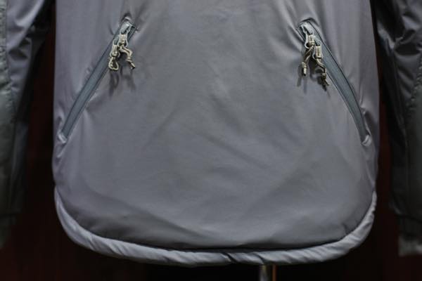 背中の裾には八の字のジッパーポケットが取り付けられており、内部では繋がっております。