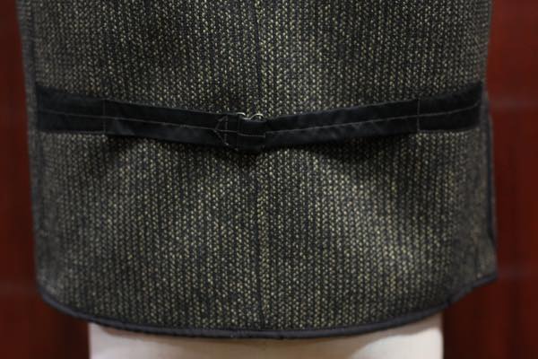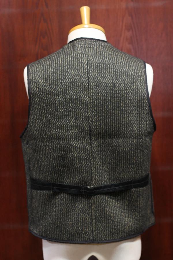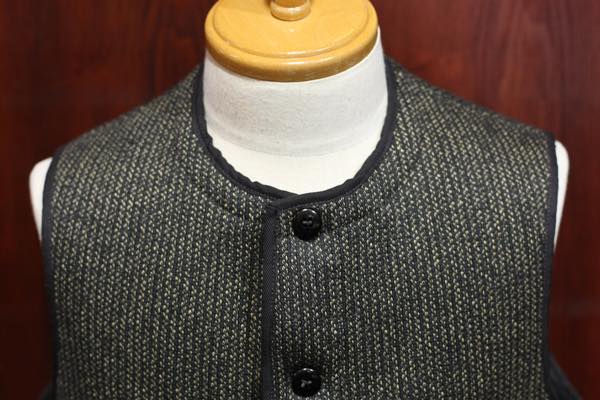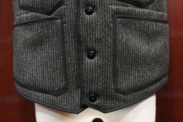 ベスト全体には、コットン・ヘリンボーンの黒い生地でパイピングが施されております。