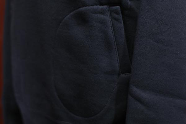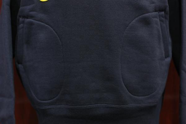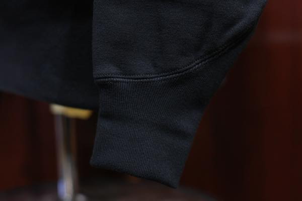 ボディの素材は、質の高い特殊な綿を用いた強撚でムラが強く太い糸を敢えて使用し、加えて厚さや固さコシを出す為に編機の微妙なセッティングを幾度も繰り返し編み立てられた素材を使用しております。更に起毛は通常の2倍以上になるような工程を施しております。
