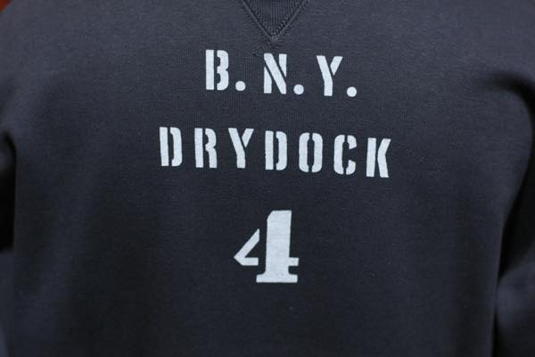 バックには、B(ブルックリン) N(ネイビー) Y(ヤード) の文字、ドライドック・ナンバー4 (戦艦を整備する場所)の文字が染み込みプリントにて施されております。