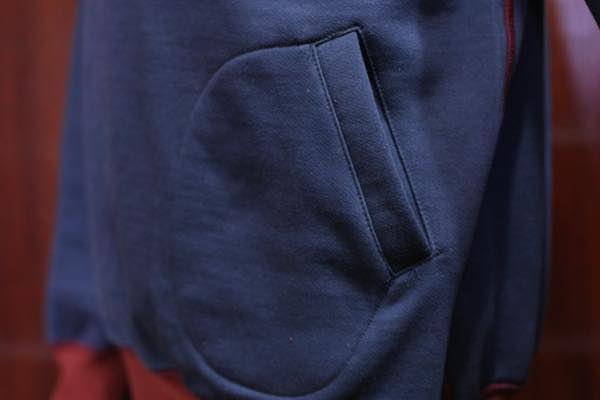フロントポケットと裏面のポケットには、グローブポケットと呼ばれる形状のポケットが取り付けられており、パッチポケットではなく切り込み式ポケットで凝った縫製仕様になっております。