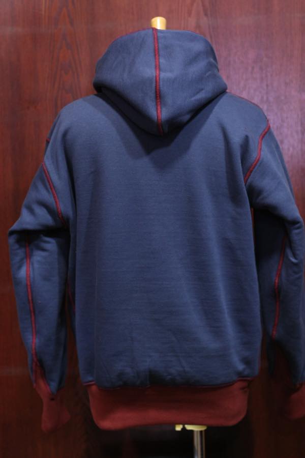 そんな当時のヴィンテージをイメージしながらフリーホイーラーズ究極のスウェットパーカーが完成しました。もはやアウターレベルのスウェットパーカーではありますが、表にヘビーウェイト裏にミディアムウェイト素材を使用してリバーシブルとしても使用可能です。