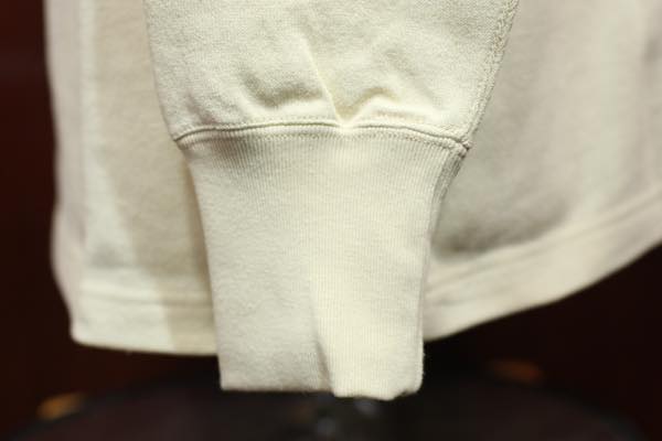 袖口、首リブには、しっかりとした丈夫なリブが付いており、前立ての裏側にも同じリブが付いております。