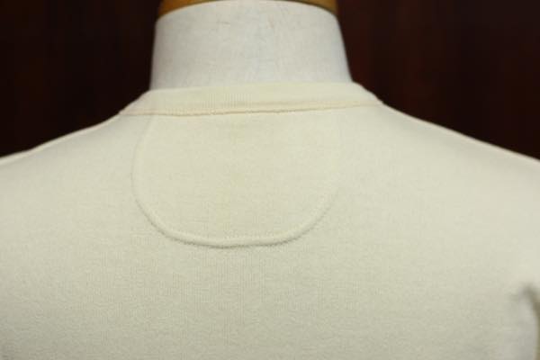 ボディの生地は、ミディアムウェイトより肉厚のあるヴィンテージ・コットン・ヘビーウェイト生地を使用しており、生地自体には伸縮性があり、触り心地・着心地が気持ちいい素材感になっております。また、ヴィンテージ感を演出する為に、ムラ糸をシャトル織機で織ることによって生地表面には若干のネップ感が風合いよく出ております。