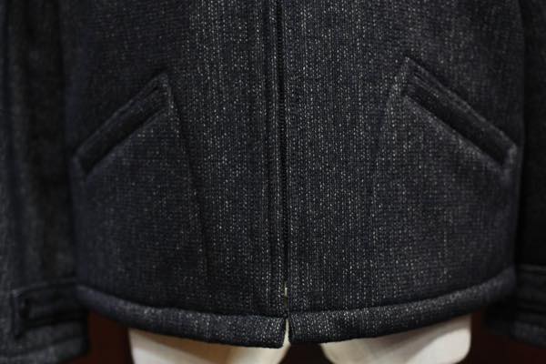 フロントはジッパー仕様で、フロント裾には玉縁仕様のポケットが設けられております。