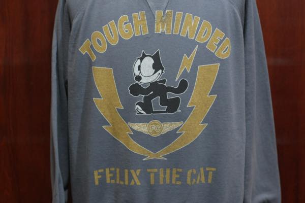 フィリックス・ザ・キャットをモチーフにした両Vタイプのオリジナル・ミリタリースウェットシャツ “TOUGH MINDED” になります。