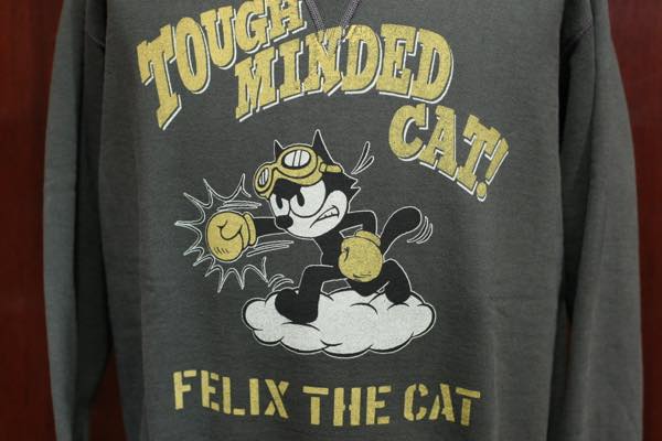 ミリタリークロージングより、フィリックス・ザ・キャットをモチーフにした両Vタイプのオリジナル・ミリタリースウェットシャツ “TOUGH MINDED CAT!” になります。