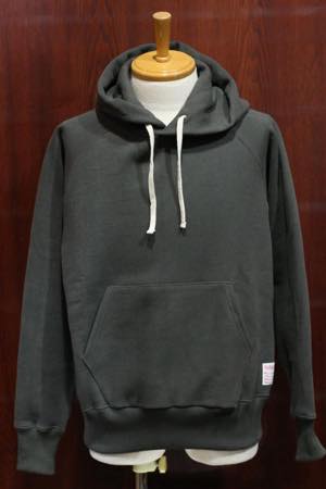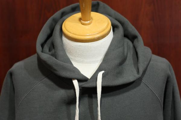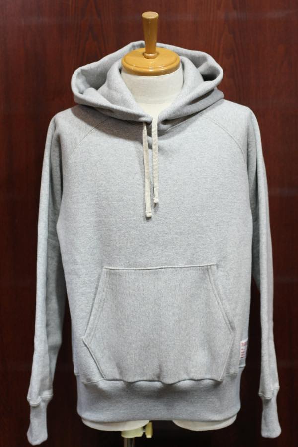 旧式吊り編み機を使用した丸胴のヘビーウェイト・スウェットのプルオーバーパーカーになります。