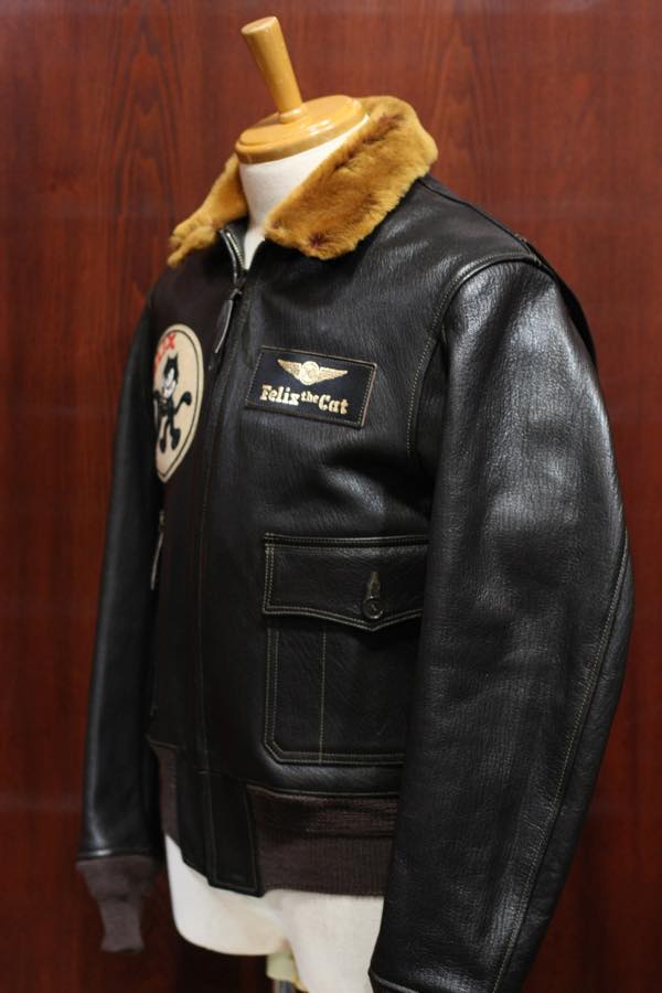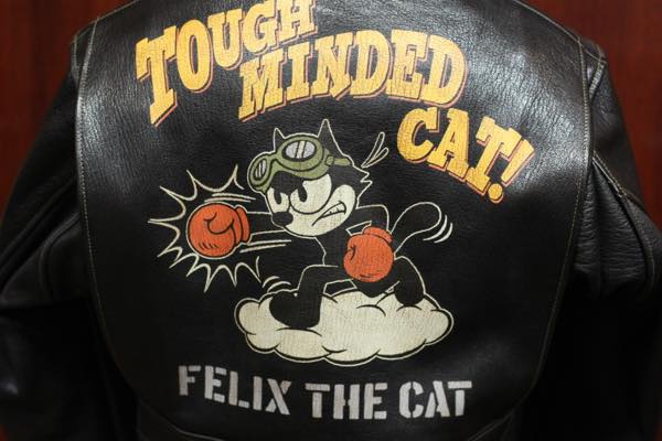M-422Aの名で第二次大戦を生き、戦後にG-1と名を改めて以降、米海軍航空隊を象徴する存在となった飛行服。その最初期のSPEC “55J14” を再現し、フィリックス ザ キャットをモチーフにカスタムを施しております。