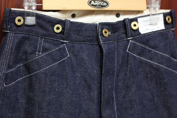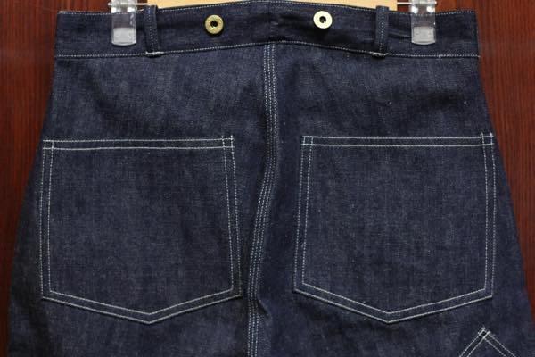 オリジナルはアメリカでも早くから鉄道の要衝であったペンシルバニア州のワークウェアブランド「フリーランド」が製作したワークパンツをモチーフにしております。ベルトループがついて間もない時代のため、ベルトループは細く狭いのが特徴的ですが、サスペンダーボタンも残されたディテールになっております。