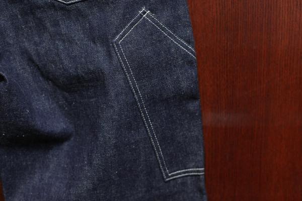 生地には、8番×10番糸を使用したセルヴィッチ・ライトオンスデニムを使用しており、春や秋などに使える生地感を使用しております。