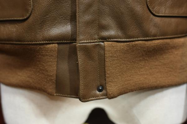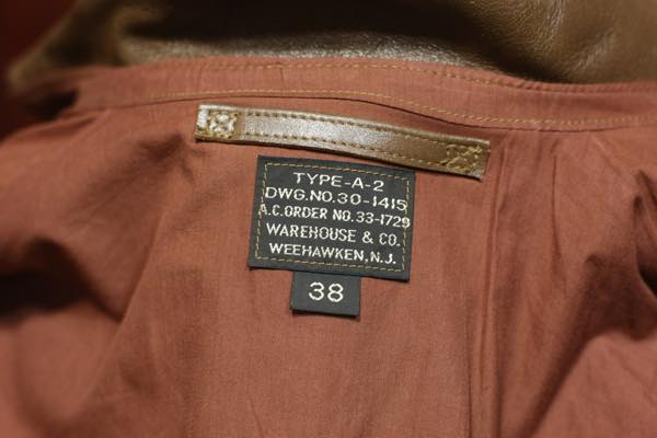 1931年から始まった,その納入業者の筆頭に立っていた「Werber Leather Coat Co社」は当初、ポケットフラップにA-1ジャケットと同じ、穴かがりのボタンを付けていました。レザージャケットに関する特許を複数取得するなど、既にクウォーターマスターから信頼を得ていた同社は、その経験を生かしてポケットのフラップをスナップボタン式に改良しました。NRAによる労働組合の発足で、生産工場としてはそれまでよりも多くの制限がかけられていたなかで、「WerberLeatherCoatCo」は軍が求めるコストダウンと機能性のアップデートに成功したのではないでしょうか。こうして1933年、完全なる「TYPEA-2」として最初に納入したものがOrderNo「33-1729」です。そのファーストモデルを、奇跡的にウエアハウスが手にしたのは数年前のことです。それから少しずつ、じっくりと資材の開発が始まり、長い時をかけてようやく誕生することになりました。外観から見た大きな特徴は、リベットが穿たれたファスナーエンドです。1930年代初頭独特のハトメよりも、さらに古いこのジッパーは、まさに最初期のA-2の象徴です。