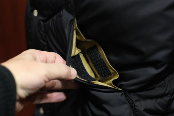フロントポケット部分は二重構造になっており、外側部分の入り口にはマジックテープで開閉するようになっております。