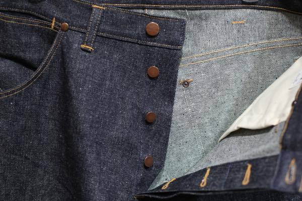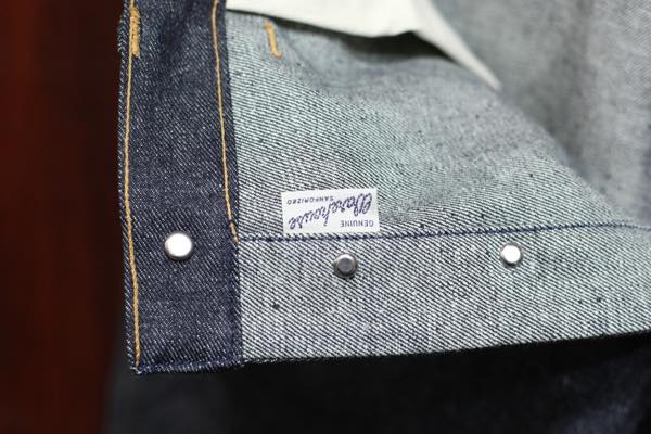 生地には、当時と同じサンフォライズド加工の左綾デニムを使用しております。